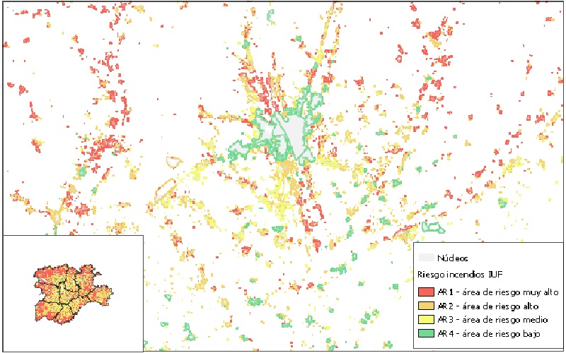 La vulnerabilidad de la interfaz urbano forestal se calcula teniendo en cuenta la carga de combustibles y la proximidad de estas áreas forestales con los núcleos urbanos y rurales.