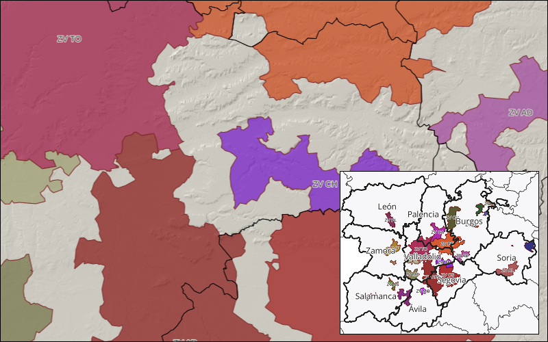 Mapa de zonas vulnerables a la contaminación por nitratos de origen agrario en Castilla y León declaradas por Decreto 5/2020, de 25 de junio, de la Junta de Castilla y León. Representación cartográfica de las 24 zonas vulnerables declaradas según Decreto, con afección sobre 387 municipios de la Comunidad, designados como vulnerables a la contaminacion con nitratos de origen agrario.