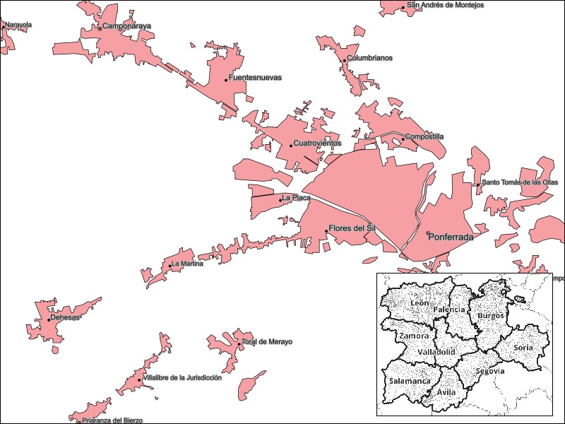 Cartografía de los núcleos de población de Castilla y León. Se recogen los núcleos de población incluidos en el nomenclátor de población del INE (Instituto Nacional de Estadística) Se distingue: • Núcleos de población • Diseminados El INE, con carácter general, considera Núcleo de población a un conjunto de al menos diez edificaciones, que están formando calles, plazas y otras vías urbanas. Las edificaciones o viviendas de una entidad singular de población que no pueden ser incluidas en el concepto de núcleo se consideran en Diseminado. De conformidad con este criterio, se representa cartográficamente el contorno que delimita cada uno de los núcleos de población, así como una aproximación al área ocupada por el diseminado. De cada uno de los núcleos se ha incluido una serie de atributos: nombre, entidad singular y municipio al que pertenece, código ine, capitalidad, tipo de entidad, etc. En esta capa no se desagregan los diseminados; para ello puede consultar la capa “Poblaciones CyL”. Más info. en: https://www.ine.es/nomen2/Metodologia.do